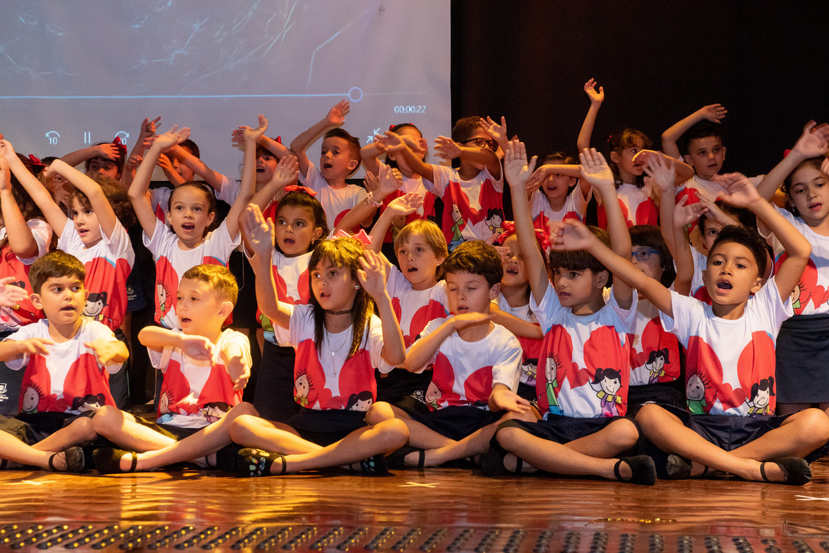 além de músicas animadas como Beattles e Jota Quest os alunos se despedem com muito amor de toda a equipe do infantil